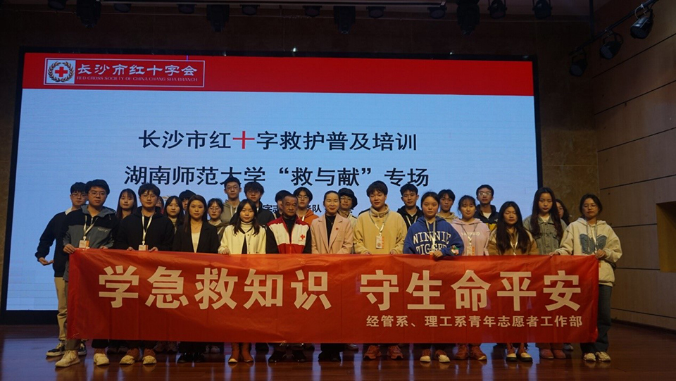 (通讯员 何缨 高陈成 罗娜)为强化校园应急知识教育宣传,提高学生安全意识,4月6日下午,树达学院经管系、理工系于树达楼113报告厅举行以“学急救知识,守生命平安“为主题的急救知识培训会。经管系系主任杨龙和、院团委副书记龙珊、理工系团总支书记朱继来、经管系团总支书记王贞、经管系辅导员刘浩月出席活动。长沙红十字会志愿服务队孙怀东担任此次培训会主讲人。