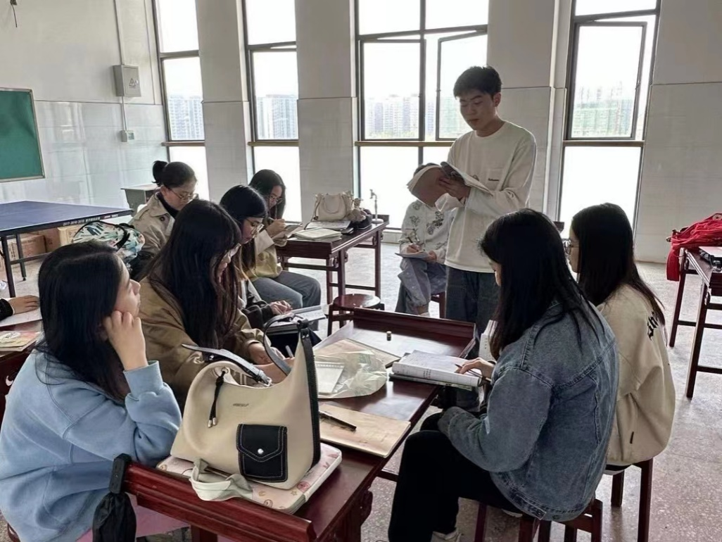 (通讯员 余文琪 肖晔 邓睿)4月12日上午,文学院2020级赴湖南师大附中博才实验中学(湘江校区)初中实习队于该校博识楼4楼开展队内听、评课活动。此次活动由实习队队员肖晔主讲,教学指导老师谭青及全体实习队员参与。