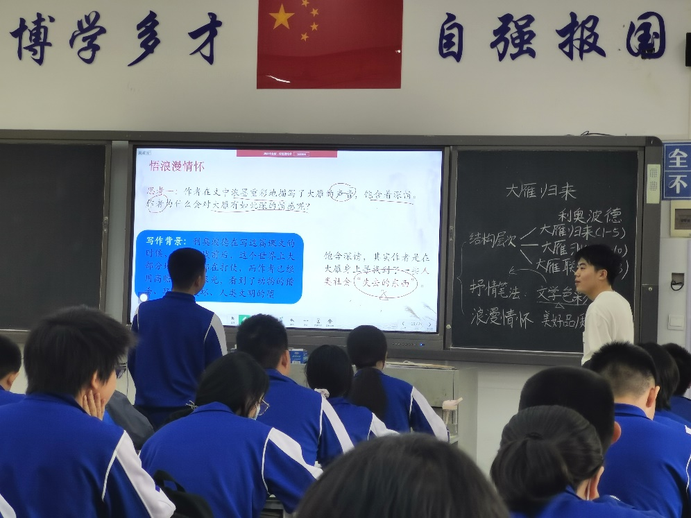 肖晔此次教学课文为《大雁归来》。他从识大雁归来、明文章结构、理说明顺序、析抒情笔法和悟浪漫情怀五个部分入手,一步步带领学生理清课文并领悟作者利奥波德希望人类与自然和谐相处的思想主旨。肖晔的课堂教学坚持学生的主体地位,展现了一场较为生动的师生对话、生本对话。