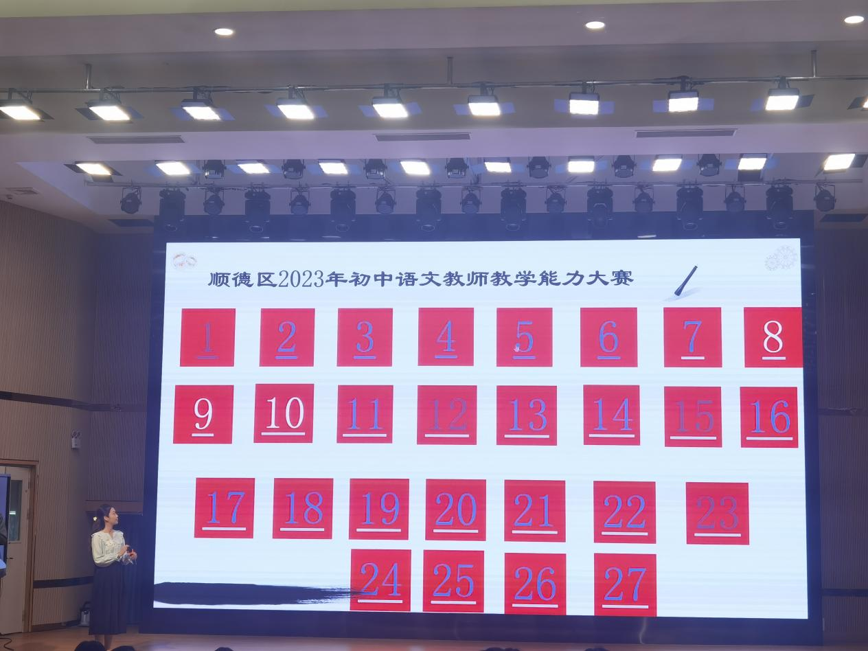 (通讯员 郑晓茜 赵晨西 仇甄)4月13日下午,广东省佛山市顺德区2023年初中语文教师教学能力大赛现场答辩环节在杏坛实验初级中学杏荟楼三楼报告厅举行。此次答辩环节由杏坛实验初级中学徐瑞老师主持,实习队队员全程观摩学习。