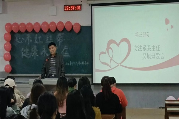 (通讯员 谭御卿 尹诗茵)4月12日中午,树达学院文法系青年创新创业指导部开展以“心系红丝带,健康永常在”为主题的线下精勤讲堂活动。文法系系主任吴旭坦,团总支书记杨海霞,辅导员肖灿、毛一、彭娇出席此次活动,2021级汉语言文学专业郭薇担任主讲人,2021级法学班贺伟担任主持人。