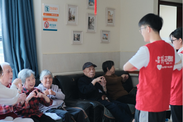 (通讯员 贾志顺 胡云 乐赢辉)4月16日上午,工程与设计学院(以下简称“工设院”)绿丝带协会在长沙市第一社会福利院开展志愿服务活动,绿丝带协会理事长贾志顺带领理事胡云,监事乐赢辉前往长沙市第一社会福利院,在工作人员的指导下,在福利院三楼活动中心教老人手势舞“感恩的心”并陪伴老人聊天。