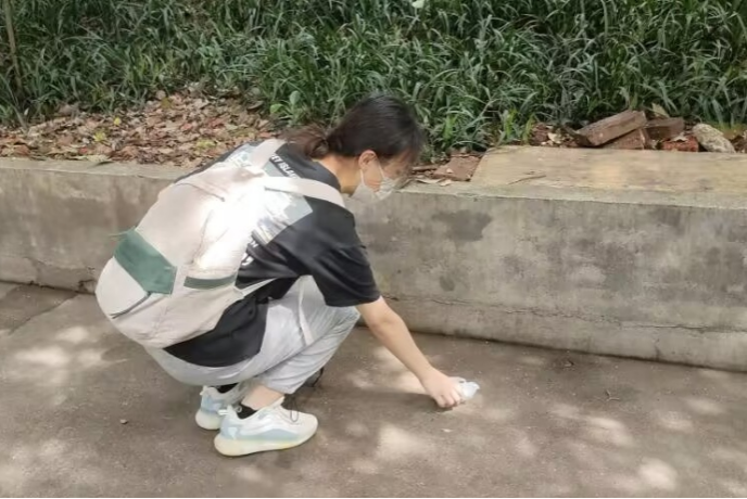 志愿者们带着垃圾袋、扫帚、簸箕等清洁用品早早地来到烈士公园集合。杨青凤讲述夏明翰、郭亮、杨开慧等先烈的英雄事迹,强调此次活动的目的与重要意义。之后,志愿者们以小组的形式前往各区域进行打扫。同学们捡起地面、草坪上的垃圾,清扫路面上的灰尘,以此缅怀为解放国家和民族而奉献自我、有着大无畏精神的革命先烈们。