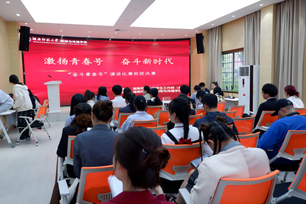 (通讯员 于蓉)激昂青春号,奋斗新时代。为深入学习贯彻习近平新时代中国特色社会主义思想,全面贯彻落实党的二十大精神,传承红色基因,4月13日,由我校学生工作部主办,新闻与传播学院(以下简称新传院)承办的“奋斗青春号”演讲比赛在星网报告厅举行。我校学生工作部副部长彭露,校团委副书记胡滢,新传院播音与主持艺术专业老师陈淼,国际汉语言学院老师龚晔颖,文学院辅导员老师丛杨,新传院学生工作办公室主任欧阳丹玲出席本次活动。