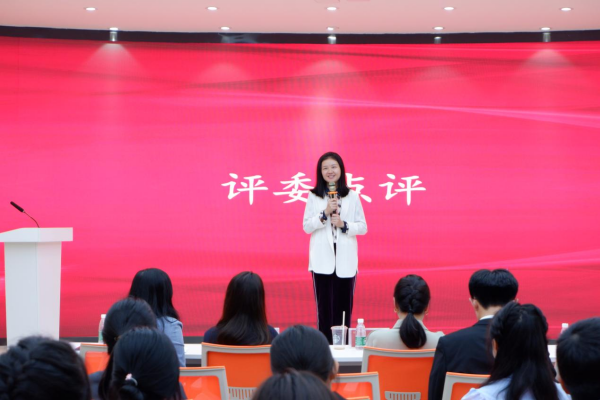 赛后评委老师进行点评。龚晔颖从文稿的内容上向选手们提出建议,她表示,演讲不仅仅是有声语言的艺术,更是文字语言的艺术。只有充分理解主题,把握主体,摒弃毫无逻辑的堆砌语言,对主题和选材进行充分的打磨,才能写出一份优秀的演讲稿。丛杨认为,演讲是一面镜子,除了要有听觉上的享受,视觉享受也需注重。他希望在需要话语沟通的正式场合里,选手们能够注重自己的语言和服装礼仪,做到身形俱佳。陈淼最后表示,演讲的故事一定要贴近自己,要具有典型性和时代新颖感,这样的故事才能说是好故事。