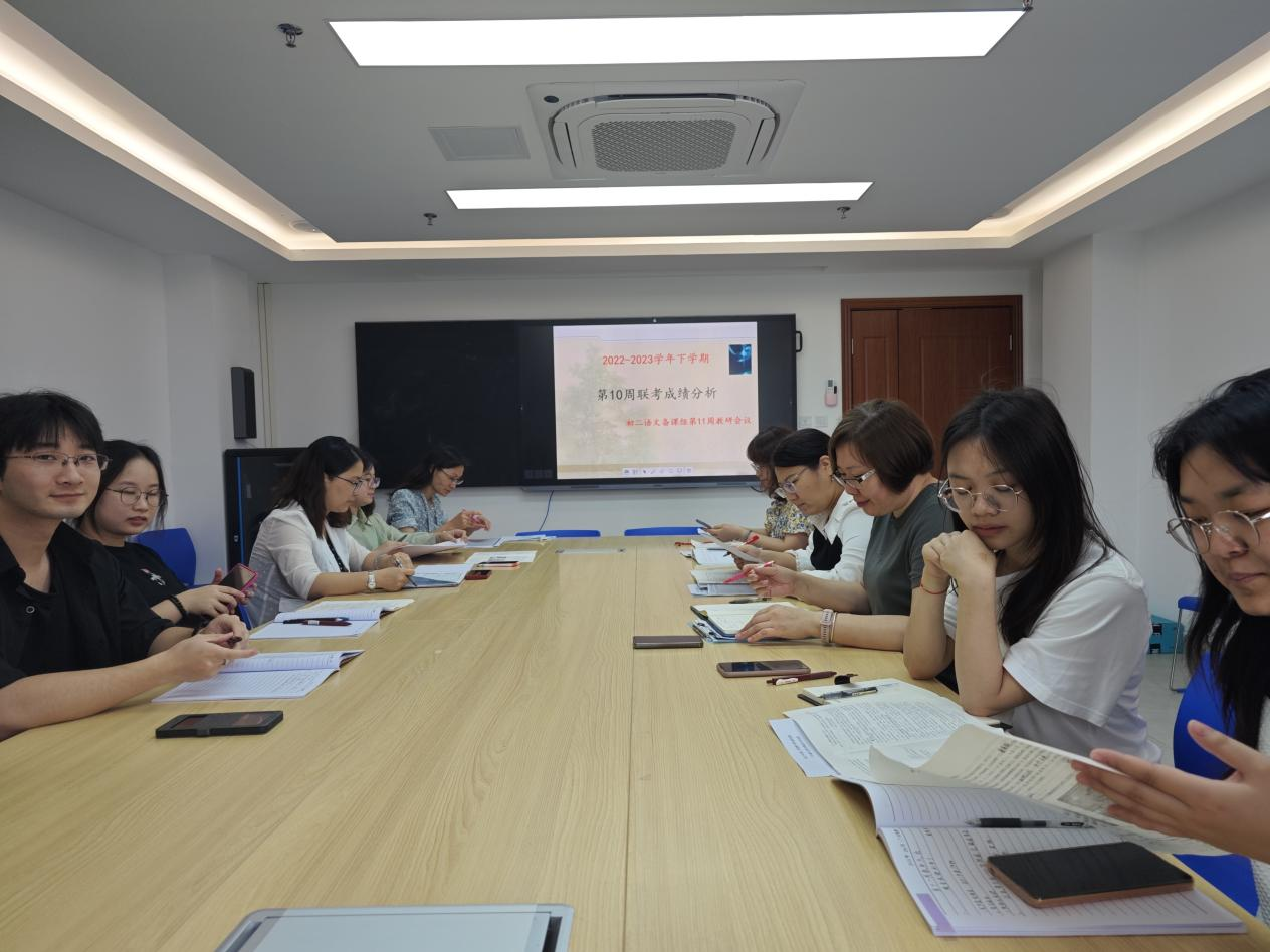 (通讯员 郑晓茜 赵晨西 仇甄)4月18日上午,文学院赴佛山市杏坛实验中学实习队于学校行政楼六楼会议室参加第10周联考成绩分析会议。此次会议由初一级语文组长王煦之和初二级语文组长彭丽清主持,全体语文老师和实习队员参加。