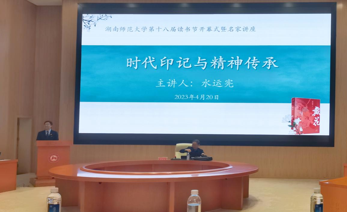 此次开幕式还邀请到了湖南省作家协会名誉主席水运宪老师进行“时代印记与精神传承”主题讲座。水运宪向在场观众介绍了自己的新作《戴花》,并分享了自己的创作历程与心得。互动环节,朝暾文学社代表携带《戴花》实体书,交由水运宪签名留念。