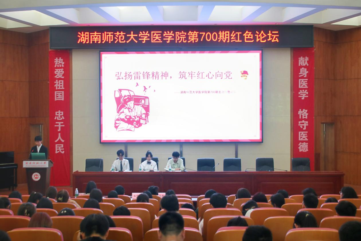 (通讯员 戴思 喻锦昌 王竟宜)4月22日下午,医学院团委宣传部在仁医楼报告厅举行“弘扬雷锋精神,筑牢红心向党”红色论坛。医学院团委书记张明明、预防医学系副教授阳益德出席活动。20级树达护理班周露华、20级检验班尹美玲、20级预防班唐勇杰担任此次论坛主讲人。22级药学一班周志扬担任此次活动主持人。医学院部分同学参与此次活动。