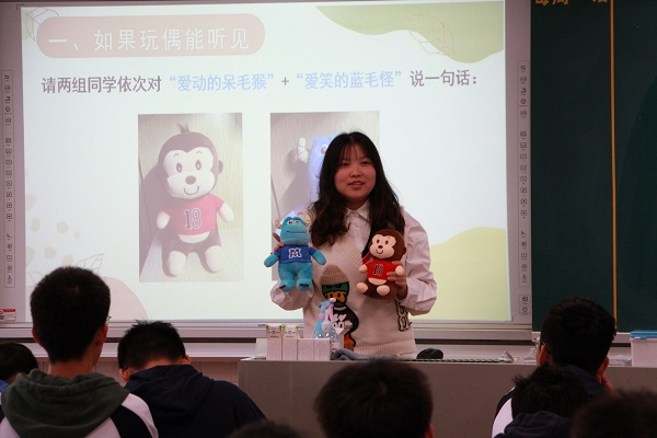 高烁以“如果玩偶能听见”活动导入,引出了“好好说话”这一课程主题。在强调“语言也具有力量”后,她播放了负面性言语视频,并请学生分享自己的感受。随后,高烁通过现场问答环节,讲解“自我觉察”这一重点,利用学案引导学生对自己曾经的话语进行自我觉察。课程最后,高烁与学生一同穿过“好好说话时光机”,更改自己曾说出的伤人话语。