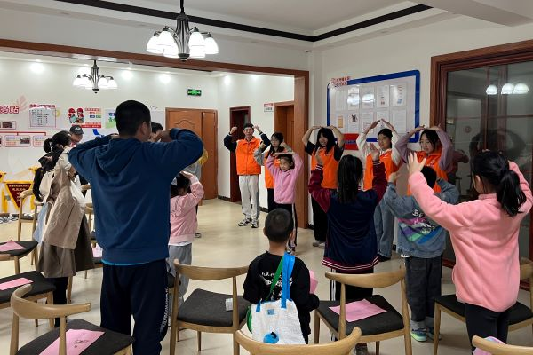 活动伊始,主持人通过游戏活跃现场的气氛,激发了小朋友们参与活动的积极性。随后的分享环节中,孩子们结合自身阅读经历介绍了“我最喜爱的一本书”,志愿者们则分享了自己的成长故事、志愿服务故事以及在成长过程中的感悟。随后,志愿者们和小朋友们一起学习手势舞并录制视频,还进行了与阅读主题有关的诗歌朗诵。