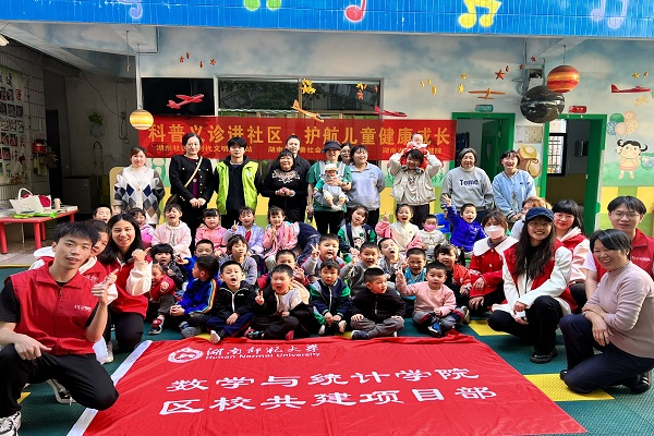 (通讯员 郭校语 张丽娟 曹慧娟)为关爱儿童健康成长,践行社会主义核心价值观,4月26日下午,数学与统计学院(以下简称“数统院”)团委区校共建项目部(以下简称“区建部”)于望月湖小区湖东社区幼儿园协助湖南省妇幼保健院开展“科普义诊进社区,护航儿童健康成长”志愿服务活动。