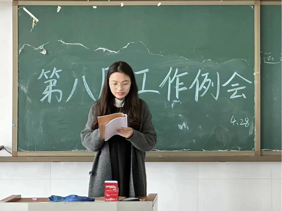 邓睿从教学教研、日常考勤两方面对上一周实习工作进行了全面总结,并对下一周的教学工作及宣传工作进行了细致的安排。她表示,大多数队员对待实习工作认真负责,态度积极,但各位队员仍需要戒骄戒躁,应多向指导老师学习班级管理策略、提升教学能力。