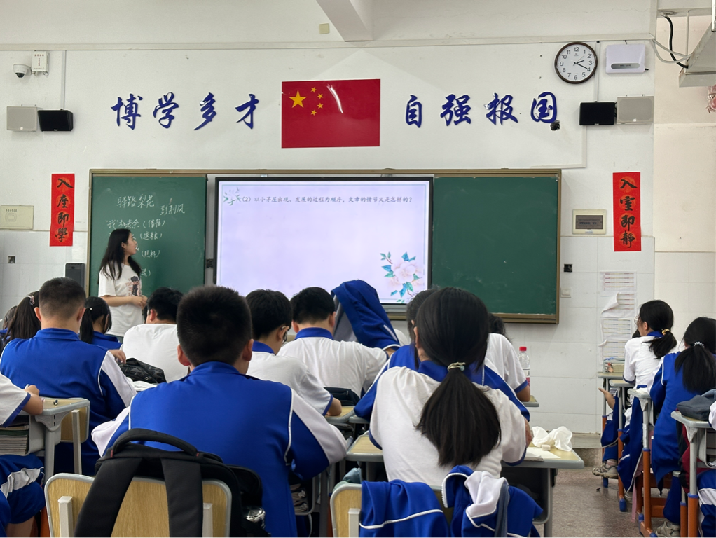 (通讯员 何苗 邓睿 肖晔)5月6日下午,文学院2020级赴湖南师大附中博才实验中学(湘江校区)初中实习队队员杨嘉荟开展新课讲授活动。初一年级2269班学生及全体实习队员参与听课。