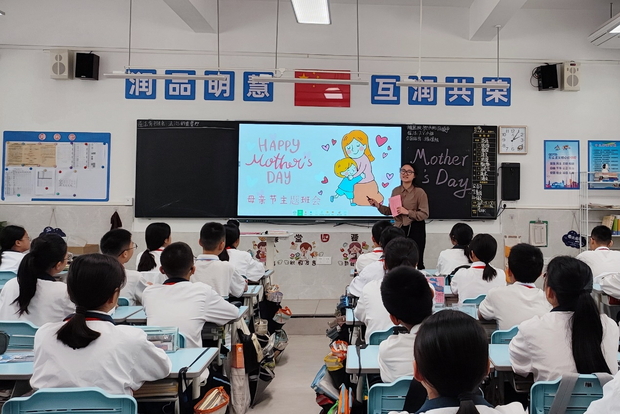 队员吕永嘉于初一级23班进行“回望成长,拥抱母亲”的班会活动课,通过网络视频、电影剪辑素材直观展现社会女性问题,引导学生体验母亲的艰辛。队员卢婉莹协助设计“妈妈的话”书信环节,维持活动现场纪律。两人的指导老师易凤珠表示:“孩子们在读信、写信时纷纷潸然泪下,但那一刻班级的沉重却是暖洋洋的,两位老师用爱去准备课程,最后也如期收获了满满的爱”。