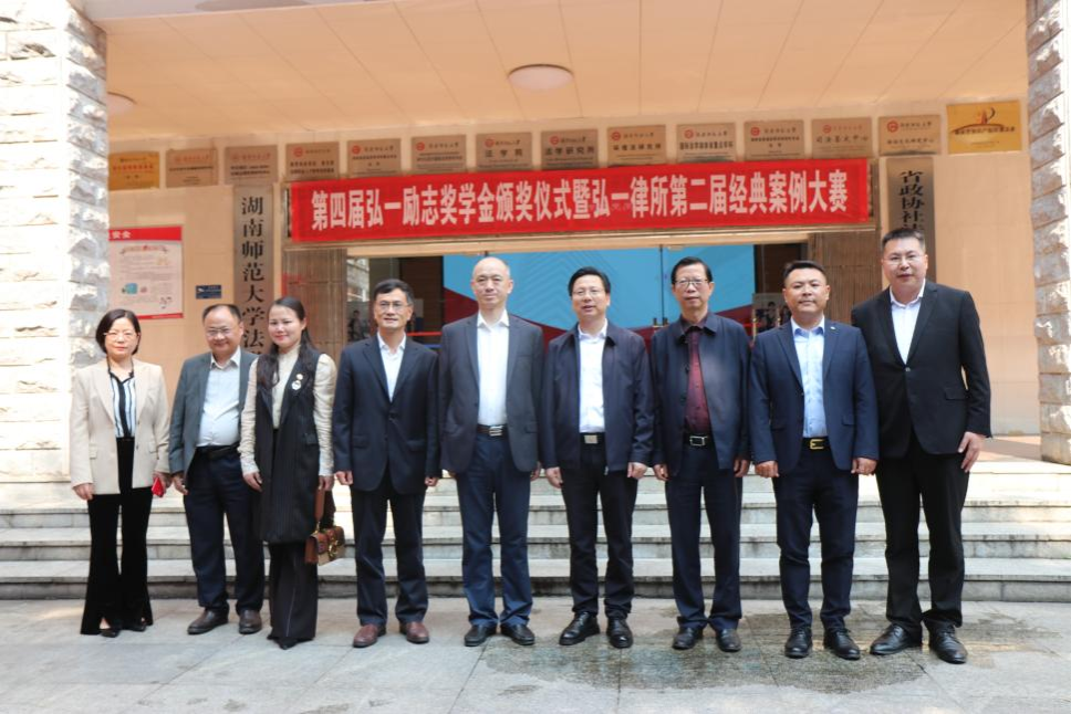(通讯员 许志娟 唐湘东 陈亚希)5月12日下午,法学院在205报告厅举行第四届弘一励志奖学金颁奖仪式。湖南弘一律师事务所党委书记、董事会主席陈宏义,律所党委副书记、董事会执行董事刘汉西,我校副校长杨震、教育基金会副秘书长刘芸玲,法学院党委书记唐建文、正处级专职组织员陈胜国、党委副书记曹俊峰、副院长周刚志、何燕华出席此次活动。活动由2022级辅导员廖星和弘一律师事务所律师梁琼分别主持。