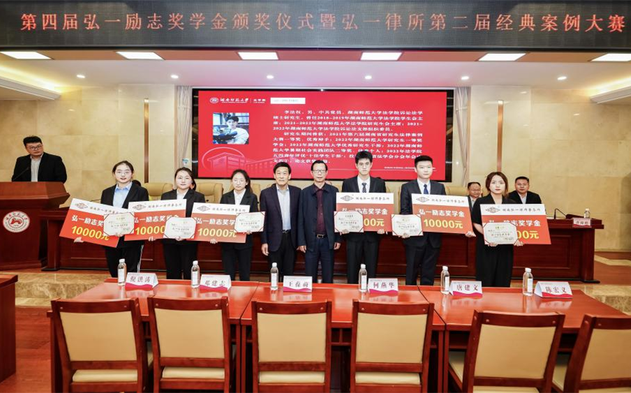 据悉,2018年,湖南弘一律师事务所向我校捐资50万元设立“弘一励志奖学金”,旨在表彰我校法科专业品学兼优的励志模范和榜样人物,目前已有50余位同学受益。自2023年开始,对每位奖学金获得者奖励1万元。该奖学金的设立,有效激发了法律专业学子刻苦求学、励志科研,热心公益、艰苦创业,奋发进取的精神,同时加强了法学院与弘一律所的合作交流和共建共赢。