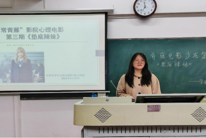 (通讯员 李亚欣 王乐怡)5月14日晚上,生命科学学院(以下简称“生科院”)学生会学生权益维护部(以下简称“权益部”)心理部于生科院三号楼B107举办“常青藤”影院心理电影沙龙第三期观影活动。院学生会权益部干事李亚欣担任此次活动主持人。