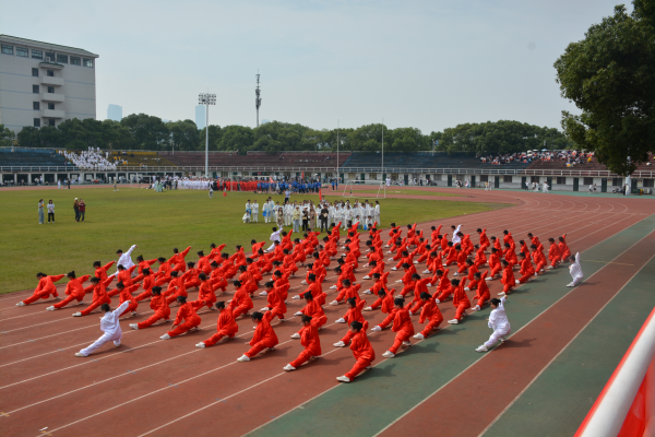 赛场上,参赛同学以铿锵有力的敬礼拉开了表演序幕。伴随着悠扬的音乐,同学们缓缓起势,动作行云流水,刚柔并济,将太极拳含蓄内敛、连绵不断、以柔克刚、急缓相间的风格展现地淋漓尽致,同时伴以响亮的口号,给观众的视觉、听觉带来了极大的震撼。