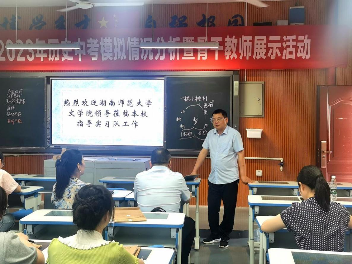 (通讯员 姚瑶 卓林瑾)5月19日下午,文学院2020级赴湖南师大附中博才实验中学(天顶校区)实习队访校拓岗,与湖南师大附中博才实验中学(天顶校区)共同组织开展实习总结会。我校文学院副院长徐朝红、系主任曾绍皇、学工办主任周灿、带队老师陈展,博才实验中学(天顶校区)副校长张瑞芳、校办公室主任汪琼、课程与教学处主任尹文珊、初二年级语文组全体教师及实习队全员参与。