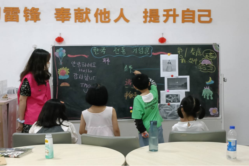 (通讯员 沈润 向璐 朱耘)5月20日上午,由外国语学院(以下简称“外院”)团委区校共建项目部主办的“学识付诸实践,语言点亮未来”国别文化课堂志愿活动于学堂坡社区公共服务中心举行,来自外院的四名志愿者以“中韩传统节日”为主题,为小朋友们带来了一堂别具一格的文化分享课。