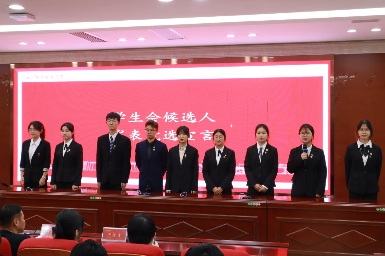 会议宣布选举下一届部门负责人,各部门候选人依次上台发表竞选宣言,展现自己的风采,通过现场唱票计票的方式选出负责人,于抒含宣布投票结果。最后肖笛致闭幕词,他鼓励学生干部恪尽职守、奋发有为,在新的一年里把团学工作再向前推进一步,谱写信息学院新篇章。在中国共青团团歌声中,会议圆满结束。