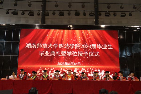 (通讯员 蔡婉佳 顾雨萱 曾茜)6月15日上午,树达学院于文体活动中心举行2023届毕业生毕业典礼暨学士学位授予仪式。我校副校长兼树达学院董事长刘子兰、历史文化学院院长钟声、生命科学学院彭贤锦、文学院副院长岳凯华、数学与统计学院副院长郭水霞、信息科学与工程学院副院长刘湘滨、外国语学院副院长刘白、美术学院吴卫、教育科学学院张卫民、树达学院院长向坚持、原院长周玉波、正处级组织员曾南雁、副院长范本林、纪委书记成学、副院长黄元国、党委副书记赵鑫海、副院长朱兴中及各系主任出席此次活动。活动由树达学院党委书记李正益主持。