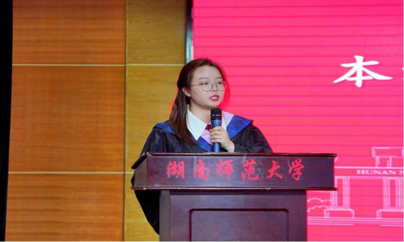 硕士毕业生代表刘佳、本科毕业生代表白忠慧分别发言。她们回忆了自己在学校的求学和成长经历,表达了对母校、对老师的感激与不舍之情和争做栋梁、报效祖国的决心。