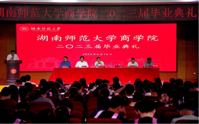 (通讯员 徐嘉俊 黄晓蕊 汪子熙)6月16日上午,商学院2023届毕业生毕业典礼在励德楼学生活动中心举行。商学院院长李军、党委书记何勇及全体在校院领导参加此次典礼。毕业典礼由院团委书记、2019级本科生辅导员郭书畅主持。