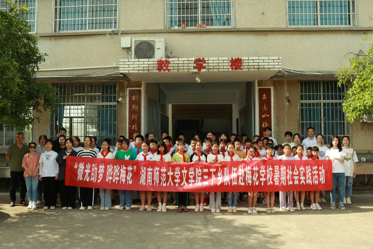 (通讯员 曾慧玲 郭瑶 陆畅)7月3日上午,文学院学生社团管理服务中心“微光助梦,晔晔梅花”暑期社会实践团于湘潭市姜畲镇梅花学校举行开班仪式。致公党湘潭市委员办公室主任陈志伟,致公党湖南省委统战理论研究会副主任汪筱凡,致公党湘潭市委会社会服务工作委员会副主任吕伟军,致公党湘潭市委员文化体育工作委员会主任、梅花学校副校长许欢,实践团指导老师丛杨出席此次活动。实践团教学组成员刘萱主持此次仪式。