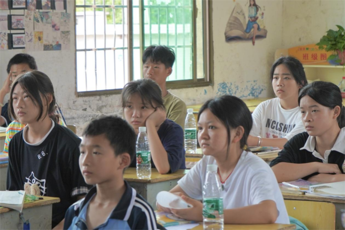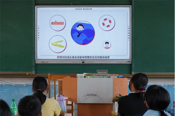 课堂开始时,实践团成员给学生们观看了一个“预防溺水”的宣传片,让学生们直观地感受到擅自前往池塘、河流、水库、海滩等地游玩的危险性。课堂上,主讲人通过分享真实案例巩固学生的安全意识,并从远离危险水域、游泳的注意事项、他人溺水如何施救、自己溺水如何自救这四个方面向学生们全面展现了预防溺水可采取的多项措施。在课堂的最后,实践团成员带领学生共同合唱湖南省教育厅发布的《防溺水,保平安》宣传歌曲,在歌词中领悟预防溺水的重要性。