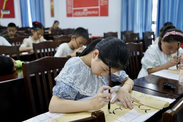 (通讯员 刘乐怡 万宇珍 邓杨)7月5日,“爱心湘传·童心支研”——我校新闻与传播学院赴宁乡市煤炭坝暑期社会实践团联合煤炭坝社区开展的书法文化课程在社区公共服务中心持续推进。实践团教学组成员杨佳逸、蔡田甜担任任课教师。