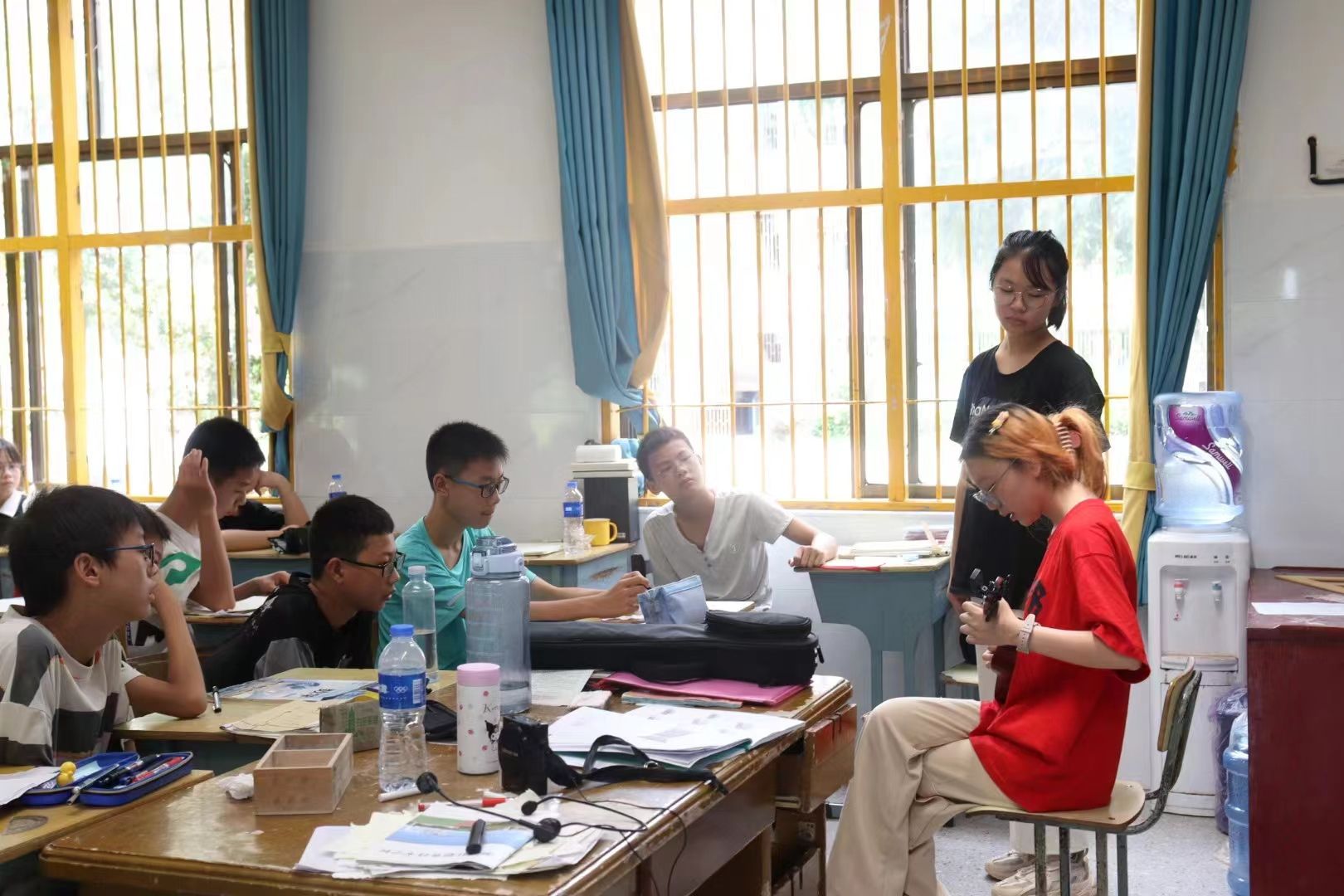 在课堂上,老师采用问答结合、理论与实践相结合的方式,每教授一个知识点,就布置一个小练笔,让学生学会运用写作的技巧。教学内容以初中教学的内容与创新想法结合为主,从记叙文的六要素讲解,教授各种实用且创新的写作技巧,教完后又给予学生充分思考的时间,模仿写作的时间。课程的末尾,为培养学生对于古诗写作的兴趣,以及提高对偶的能力,老师列举了部分对子,让他们了解,并设置几个练习的对子让他们学着去对。