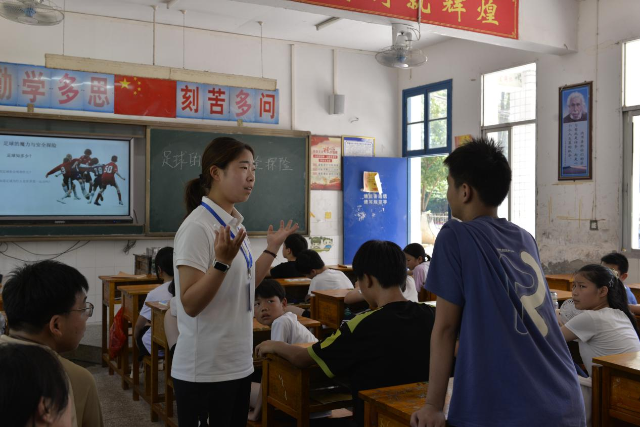 (通讯员 刘蓓蓓 叶翔 张颖婕)7月9日上午,我校体育学院“潇湘武韵”暑期社会实践团为乡村学子带来一堂的、足球理论课,以专业体育教育资源,点燃乡村学生体育梦想,为“体教融合”助力乡村教育发展注入新动能。