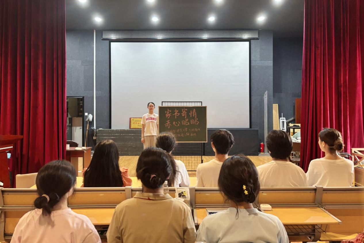 (通讯员 刘欣怡 吕依婷 程昕哲)为传承红色文化,厚植青年学子的家国情怀,7月11日,“红场有戏”文学院三下乡实践团在文渊楼403教室开展以“家书寄情,赤心昭昭”为主题的红色家书活动。实践团成员全体参与,队长杨童舒为主讲人。