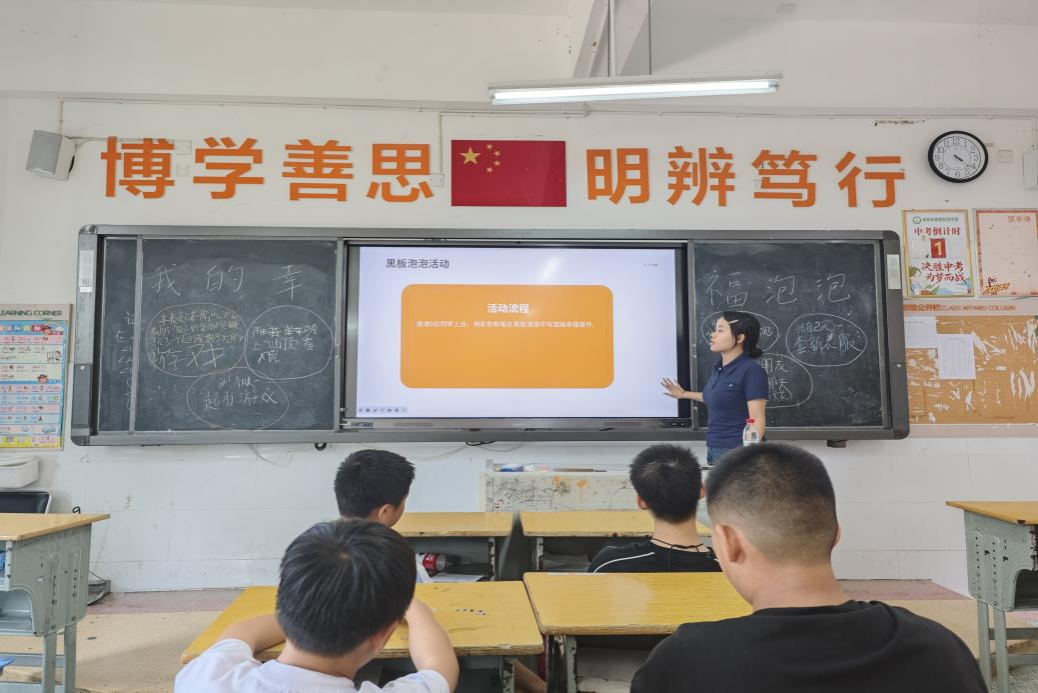 (通讯员 陈宇)为积极响应国家关于加强乡村儿童太阳集团tyc9728服务的号召,助力乡村青少年积极心理品质培育,7月11日下午,文学院“文润澧源”暑期社会实践团在桑植县思源实验学校C2306教室开展“我的幸福泡泡”特色课程。此次课程由实践团教学组成员刘莘主讲,从“看、思、行”三环节展开。
