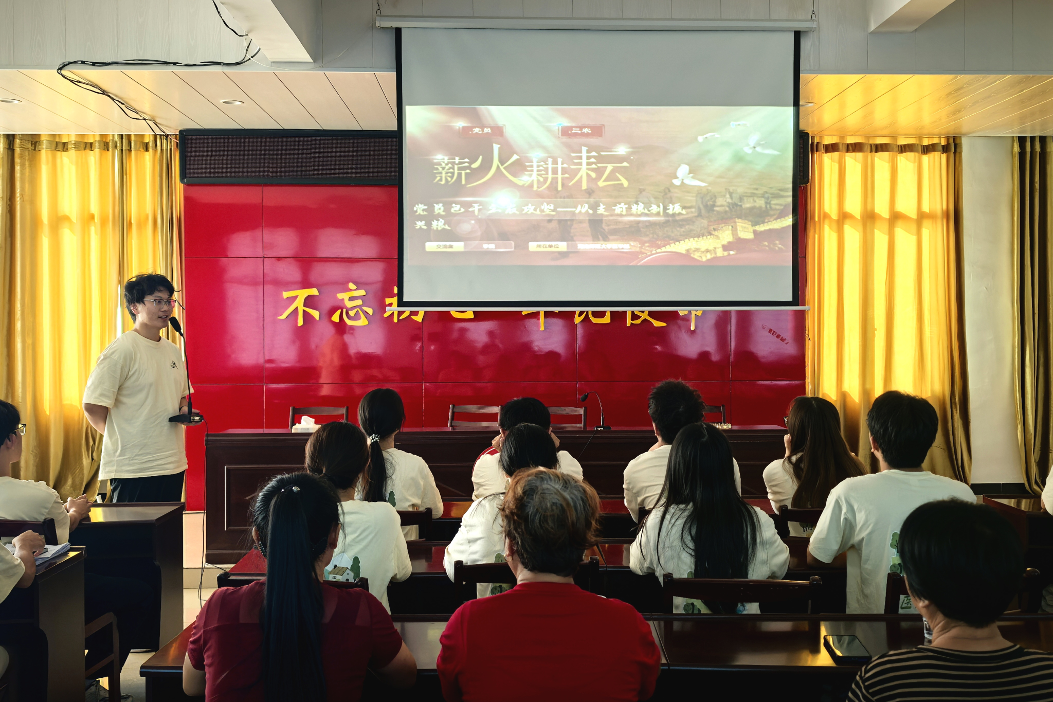 11日下午,红色论坛组李魏为村民们带来红色知识宣讲,通过问题导入、党员义务、事实举例、方针分析四个部分,详细分析了党员包干三农攻坚。到场的村民们认真聆听,宣讲效果显著。