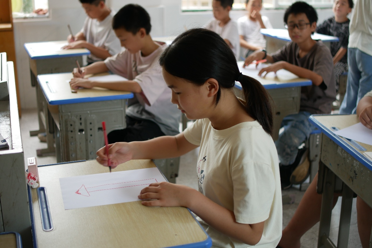 课程围绕“压力管理”的主题展开。郭思琪以一段游戏视频引入课堂,组织孩子们参与两轮动作记忆游戏,让他们感受了压力的存在方式。在课堂互动环节中,郭思琪设计了“压力水平计”绘画活动,引导孩子们用图形和刻度标注自身压力来源及程度。收集的作品显示,考试焦虑和自我要求高是主要的压力来源。针对孩子们提到的主要压力源,郭思琪以“气球充气过多会爆炸”做比喻,帮助他们理解压力平衡的重要性。对于孩子们存在的备考焦虑、期待过高等共性问题,团队提供了拆解目标、正向暗示、调整预期等实用方法,同步设置“压力宣泄角”,让他们通过书写、呼吸训练释放情绪。