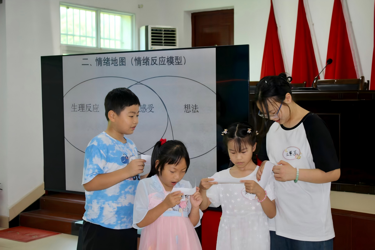 (通讯员 向倩荧 席子坤 盛若水)7月16日,冬青营暑期社会实践团(以下简称“实践团”)在“微光计划·童行一夏”暑期夏令营中,协同镇政府与社工站工作人员为当地20余名困境儿童开展心理辅导课程,旨在帮助儿童塑造健康人格,促进他们快乐成长。