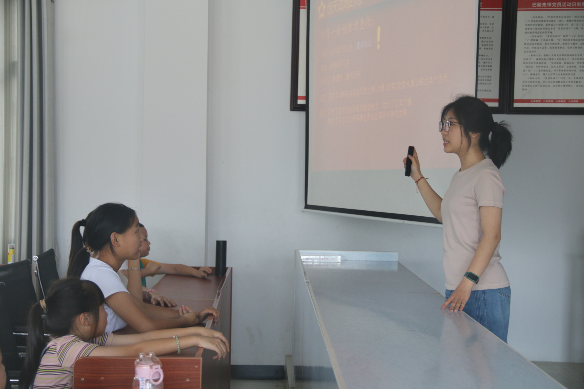 (通讯员 尹彦茜 袁慧)我校教育科学学院“青衿踏岳,梅绽千石”暑期社会实践团(以下简称“实践团”)于7月19日在湖南省岳阳市平江县千石村村委开展红色论坛主题活动。实践团成员王梦宾担任此次课堂主讲人,千石村部分学生参与此次课堂。