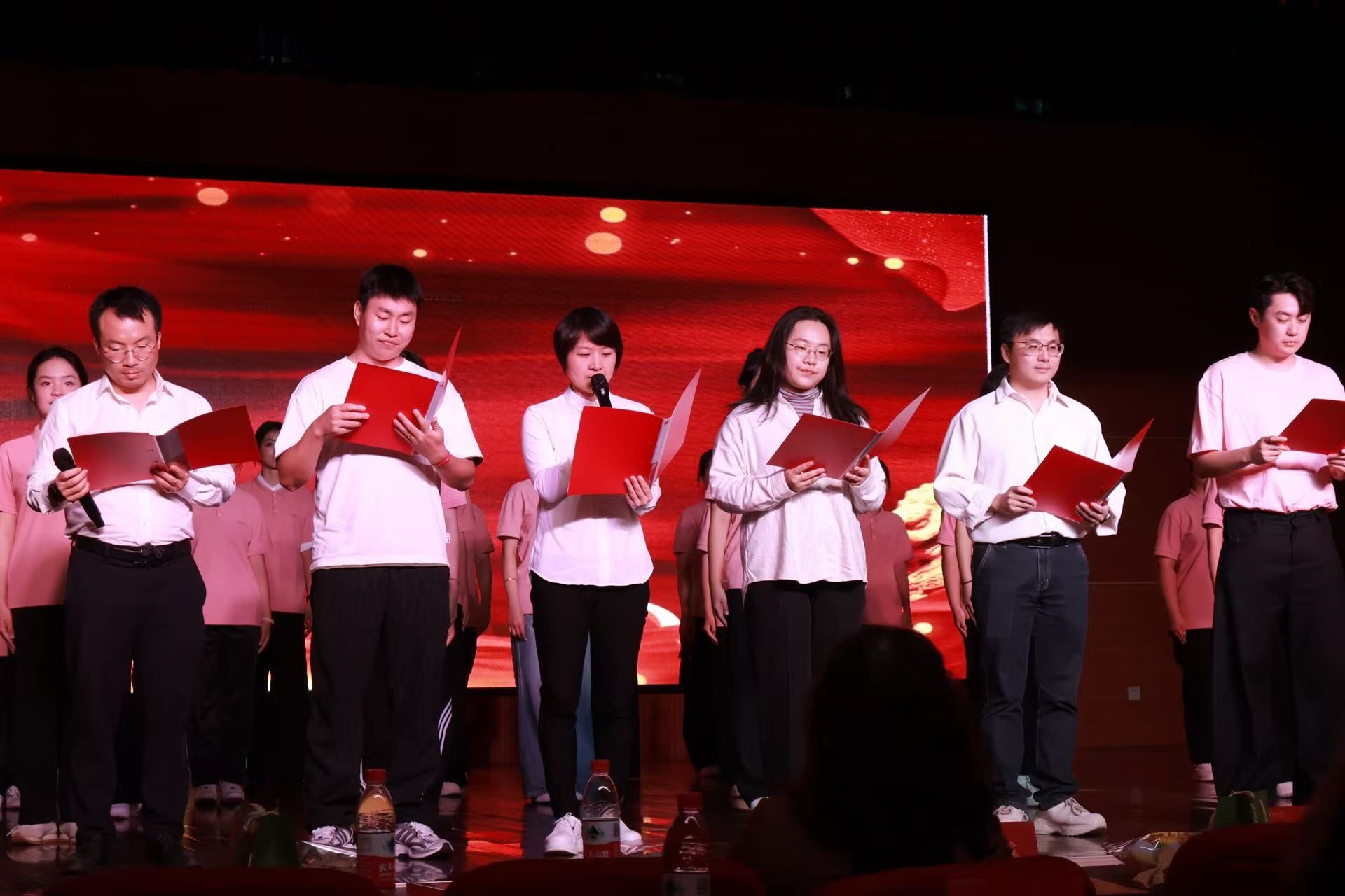 晚会在开场舞《Diamonds》的动感节拍中拉开帷幕,点燃全场热情。随后的节目异彩纷呈:歌曲《改变自己》与《国王与乞丐》风格迥异,或激昂向上,或深情婉转,展现出音乐的多元魅力;乐器合奏《诀别书》旋律动人,演奏者们默契配合,尽显专业素养;舞蹈《飞天茅台》&《Dancing alone》将传统与现代元素巧妙融合,舞步灵动,创意十足;魔术《幸福》变幻莫测,引得现场惊叹连连;小品《少爷和小姐》表演幽默,情节逗趣,笑声掌声此起彼伏。晚会尾声,新生辅导员胡思琦与班导、教官们共同献唱《我的未来式》,以青春之声寄语未来;新生合唱团与班导师以一曲深情庄重的《他在那里站岗》为晚会画上圆满句号。