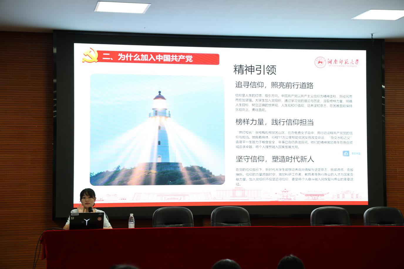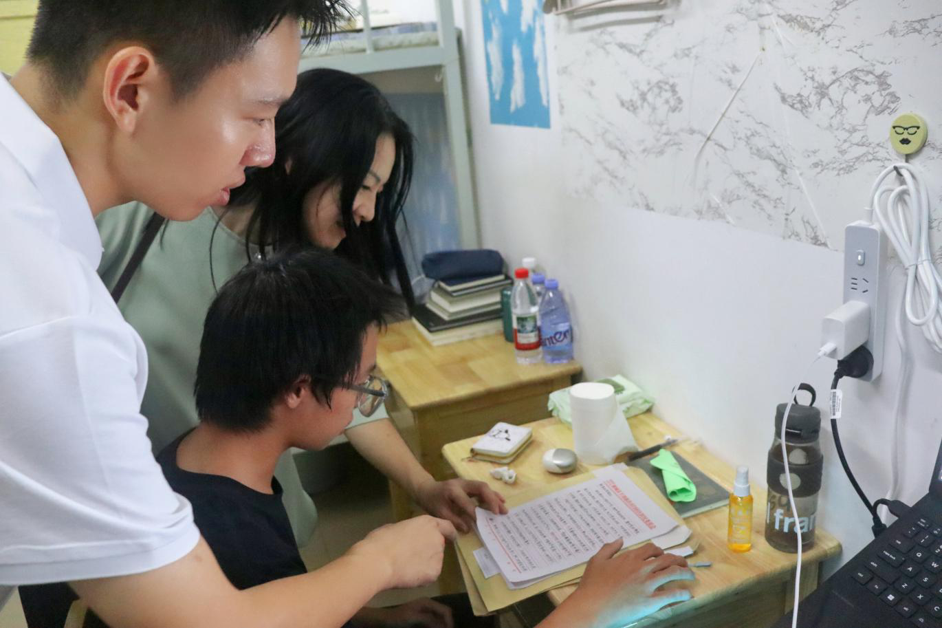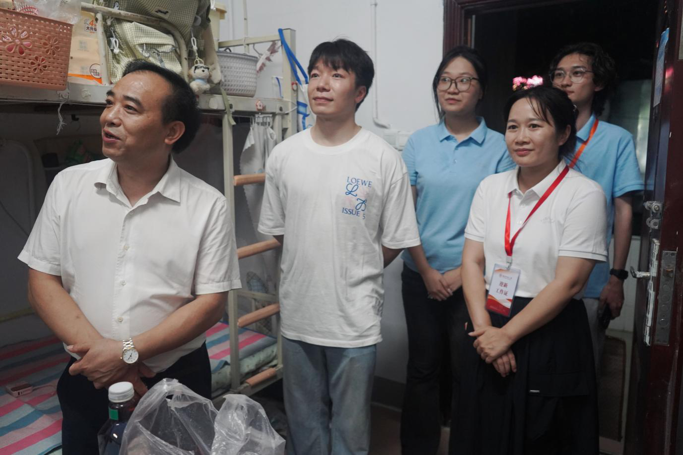 “宿舍住得习惯吗?食堂饭菜口味如何?”9月14日晚,学院党委书记王胜章带领院领导班子、系主任、班导师及学工办全体老师,分成5个小组深入新生宿舍走访。“住的地方安静,饭菜味道好!”张公岭校区1栋宿舍101室的6名女生几乎异口同声地回答。进入2栋宿舍302室,王胜章看到桌上摆放的入党申请书,当即与新生交流:“同学们今后从事的是党和人民的新闻事业,新闻工作者首先要站稳政治立场,厚植家国情怀,只有这样才能写出群众爱看的新闻作品。”他鼓励新生们在大学期间不仅要学好专业知识,更要筑牢思想根基,积极向党组织靠拢。针对新生们积极要求进步的政治热情,学院迅速组织举办入党启蒙教育讲座,邀请学校党委组织部的老师详细讲解入党流程、党员标准及“为党育人、为国育才”的使命,解答了学生关于入党要求的疑问。此前访寝时新生展现的入党积极性,在课后进一步彰显,当晚就有近百名同学着手准备入党申请书,不少同学在申请书中结合专业写下初心:“希望用镜头记录时代变迁,用文字传递党的声音”“愿以党员标准严格要求自己,在新闻实践中践行责任与担当”。据统计,入学教育期间,学院各党支部共收到新生入党申请书204份,占符合条件新生总数的86.3%。