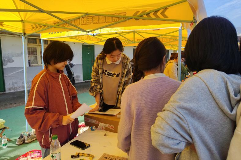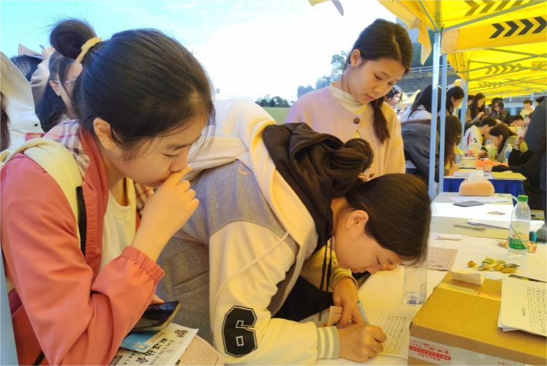 社团理事们设计小游戏并发放零食、饮料等礼品,不少同学排队参与游戏,期间,有同学咨询戏剧社日常排练安排、年度演出计划以及剧组人员构成等内容,理事们凭借扎实的业务储备,逐一进行专业、细致的解答。现场负责招新的戏剧社理事表示,“前来报名的同学来自不同的年级和专业,报名人数比我们想象中的多了近一半,这远超我们的预期。”