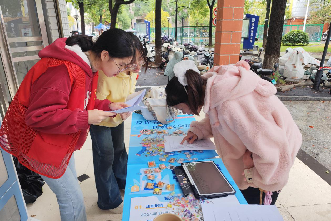 活动前期,天马团学通过QQ推送、海报张贴、宣传推文等多渠道宣传,同时联动青工部招募6名志愿者,完成活动筹备。活动现场,参与学生在登记个人信息后进入答题环节。每个活动点位均配备3名工作人员,实时记录答题积分,确保活动有序推进。活动特别增设反诈情景模拟抢答环节,主持人依次抛出“冒充老师收取学费”等真实诈骗场景,现场同学举手抢答应对策略。抢答正确的同学获得额外积分奖励;回答错误时,工作人员及时剖析骗局漏洞,讲解正确应对方法,引导大家在互动思辨中深化对诈骗手法的认知,提升防范技能。