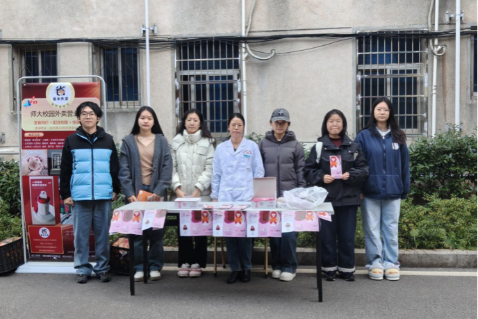 活动于每日午餐时段在食堂前坪设置固定宣传点,文学院学生志愿者按时集结,有序开展服务。现场通过主动发放与自助领取相结合的方式,向师生提供防艾宣传手册、防护用品及主题宣传挂件。志愿者们还就艾滋病传播途径、预防措施和常见认知误区等内容进行同步讲解。李咏雪现场接受咨询,针对防护细节及相关知识进行专业解答,传递“科学防艾、平等关爱”的健康理念。